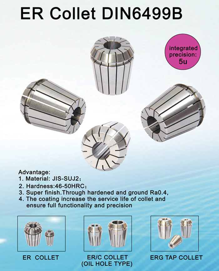 1. ER collet is using the Japanese material: JIS-SUJ2, which has high stability and elasticity;