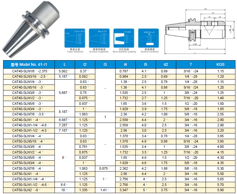 CAT/SLN 側固式立銑刀柄